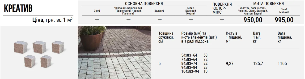 Бруківка Креатив вирізняється універсальністю — вона легко стане доповненням до різних стилів та проектів ландшафтного дизайну, повністю відповідаючи своїй назві.