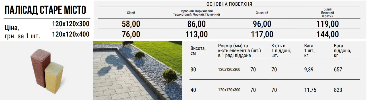 Палісад «Старе місто» в перерізі має класичну прямокутну форму зі скругленими кутами та особливо гармонійно виступає в тандемі з однойменною бруківкою “Старе місто”.