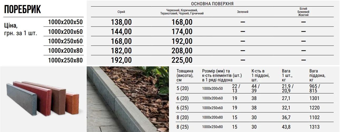 Завдяки наявності поребриків різних конфігурацій і кольорів ви зможете підібрати вироби, які вдало підходитимуть для вашої території.